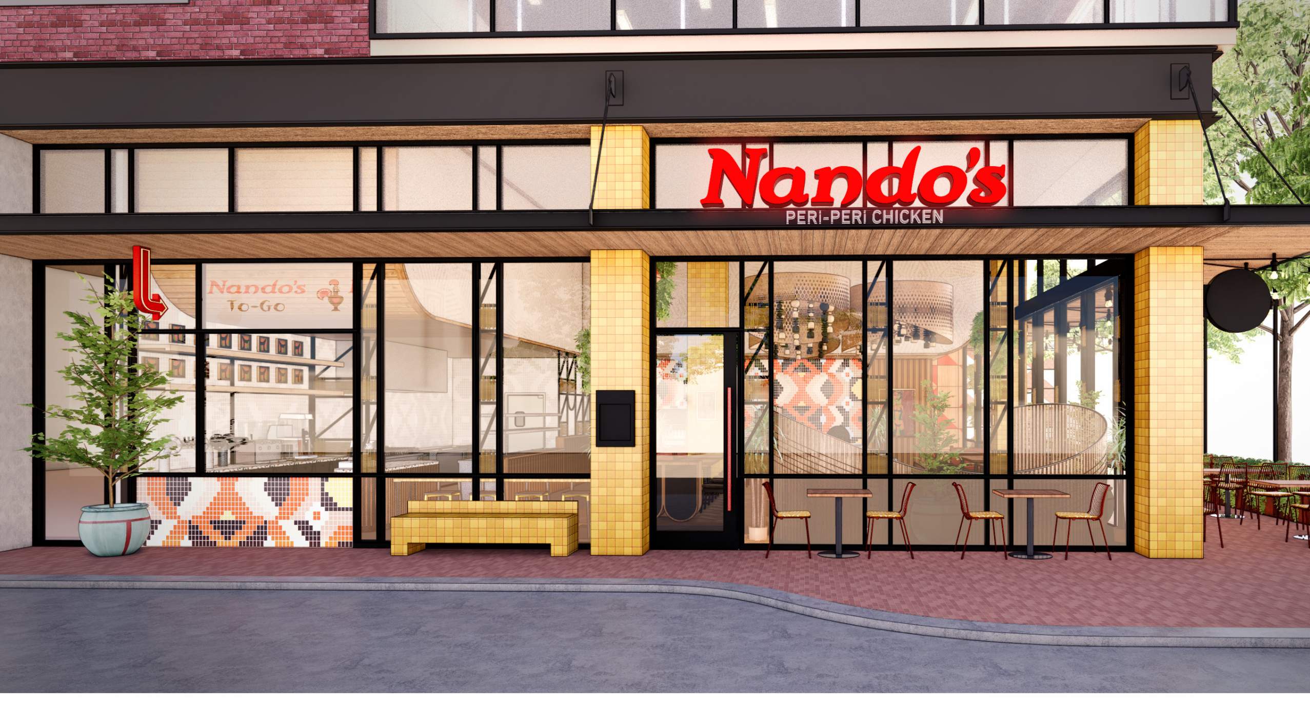 Just like every other Nando’s restaurant, this one’s earthy textures and vibrant colours will reflect the brand’s sunny African heritage.